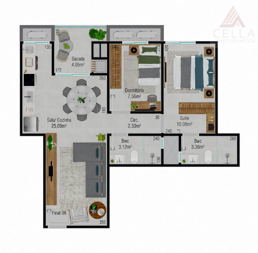 Apartamentos com 2 quartos, sendo 1 suíte projetados para oferecer o máximo em conforto e funcionalidade, sendo a escolha ideal para quem busca um lar moderno e prático.